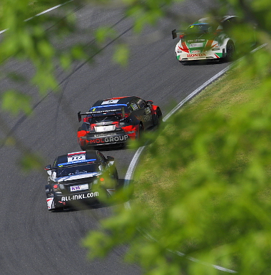 Szegény „Benucci” lecsúszott az ívről, Norbi pedig szépen besorolt elé lezárva az acsarkodós vitát. Igen ám, de odáig a mezőny közepe el sem jutott. Muller a tizedik helyről zúzott egy erős rajtot, majd összeért Thompsonnnal, aki a falba ugratott és vele szinkronban Huffot is kilökte. Igaz ő a szemközti falat választotta. Kozlovszki maradt talpon egyedül a pirosaknál. Esküszöm megsajnáltam őket. Ha valakiket, hát őket pofozza az élet. Mullernek a hátsó kereke bánta, off. Chilton is ott maradt törve. Rövid sárga után, pirossal új startot rendeltek el, a Safety car mögül.
