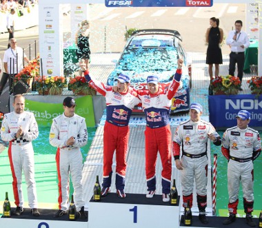 Pilóták 1. Sebastien Loeb Citroën WRT 217 pont 2. Mikko Hirvonen Citroën WRT 155 pont 3. Petter Solberg Ford WRT 119 pont 4. Mads Östberg Adapta WRT 114 pont 5. Jari-Matti Latvala Ford WRT 112 pont 6. Jevgenyij Novikov M-Sport Ford WRT 63 pont 7. Martin Prokop Czech Ford Rally Team 40 pont 8. Thierry Neuville Citroën Junior WRT 38 pont 9. Dani Sordo Mini WRC Team 31 pont 10. Sebastien Ogier Volkswagen Motorsport 31 pont Gyártók 1. Citroën WRT 348 pont 2. Ford WRT 237 pont 3. M-Sport Ford WRT 123 pont 4. Qatar WRT 63 pont 5. Adapta WRT 61 pont 6. Citroën Junior WRT 60 pont 7. Mini WRC Team 26 pont 8. Brazil WRT 20 pont