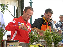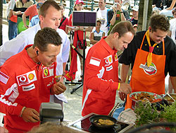 A Ferrari pilóták a Recept Klub műsorvezetőivel közösen alkották meg a magyar ételkülönlegességeket. Michael Schumacher és Kaszás Géza magyaros libamájat lecsóval és sült burgonyával, míg Rubens Barrichello és Kovács Lázár túrós csuszával és paprikamártással körített szürkemarha bélszínt készített.