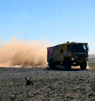 Már az esti eligazítás után sejteni lehetett, hogy a pihenőnapot megelőző, As Skan és Dakhla közötti 204 kilométeres menet nem lesz egyszerű a kalocsai kamionos alakulat számára. René Metge versenyigazgató a tipikus nyugat-szaharai sík, kavicsos terepre tempós, rendkívül gyors pályát vázolt fel, ami a dolgok jelenlegi állása szerint egyáltalán nem kedvező a Qualisportra nézve: a gárdának a viadal kezdete óta gondjai vannak a Scania végsebességével, amely rejtélyes okok miatt rendre elmarad a várakozásoktól, így borítékolható volt, hogy ez megbosszulja önmagát.