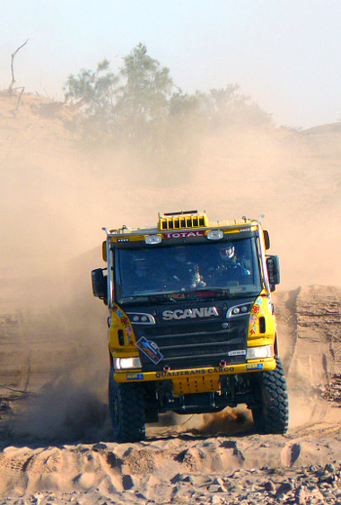 A Scania-egység a zömmel tempós, gyors szakaszt 2 óra 18 perc 8 másodperc alatt teljesítette, amely a kamionos kategóriában az 5. legjobb eredmény volt, ám az időbüntetés miatt a kategória összesítésében visszacsúsztak a 8. helyre. A napot a monstrumok között a metángáz-hajtású Kamaz nyerte, a volánja mögött Szergej Kuprijanovval: az oroszt az MAN-es Elisabete Jacinto, valamint a másik Kamaz, a kategória összesítésében is vezető Anton Shibalov követte.