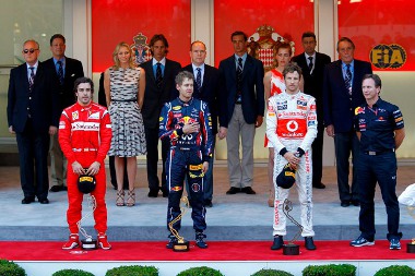 Sebastian Vettel ezúttal egy olyan versenyen szerzett győzelmet, Monacóban, ahol még ezelőtt nem sikerült felállnia a dobogó legfelső fokára. A fiatal tehetséget Fortuna asszonya a kegyeibe fogadta, hiszen minden a címvédő pilóta kezére játszott. A ferraris Alonsónak viszont nem hozott szerencsét új aranyfestésű sisakja, hiszen a győzelem árnyékából végül csak második lett. A bronzérmes helyen Jenson Button ért célba a McLarennel.