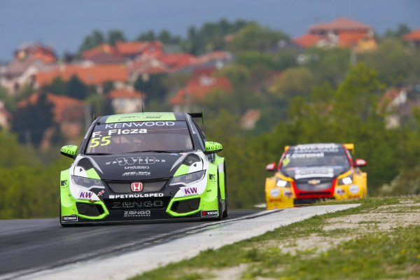 Eközben a versenyben maradt két gyári Honda is szenvedett a slick gumikon, így a Zengő Motorsport pilótája, Ficza Ferenc előbb Tiago Monteirót, majd Rob Huffot is megelőzte. Norbi távollétében is volt egy magyar a pályán, aki lázba hozta a közönséget. Ficza az első pontjait szerezte meg a WTCC-ben azzal, hogy a kilencedik helyre hozta be a zengős Hondát! A japánok hivatalos csapata pont nélkül maradt, miután Huff az utolsó körben elveszítette a 10. helyét.