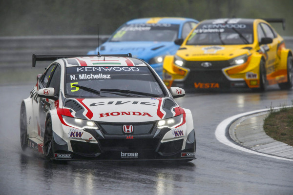 “Irány a dobogó!” Michelisz Norbert ezzel a felkiáltással jelentkezett videójában a boxból nem sokkal az első futam rajtja előtt a Hungaroringen. Miután a szombati időmérőedzésen a hatodik helyet szerezte meg, a fordított rajtrácsos első futamon az ötödik rajtkockából indult volna. Sajnos a rajtig már nem jutott el, a felvezető körön ugyanis a kilencedik kanyarnál ki kellett állnia a pályáról. “Nagy a füst. Valami baj van a turbóval vagy a motorral” – jelezte Michelisz a csapatrádióban. Néhány pillanattal később már poroltóval oltották a Honda hátulját. Kiderült, hogy a turbófeltöltőt ki kell cserélni, ami miatt meg kell szegni a parc fermé-szabályt, így a mezőny végéről indul majd a Fő futamon.