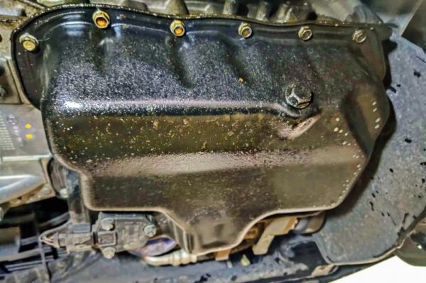A kocsit megemelve elég egyértelmű volt a szivárgás forrása. Az olajteknő külseje úszott az olajban, miközben felette a motorblokk lényegében száraz volt. Megadta magát az olajteknő tömítése. Ezek a viszonylag vastag tömítések is öregednek, a hőterhelés hatására egyre ridegebbé válnak. Idővel hajszálrepedések képződnek bennük, ahol az olaj utat talál a szabadba. A szivárgás idővel persze egyre intenzívebbé válik, megoldást pedig csak a tömítés cseréje jelent.