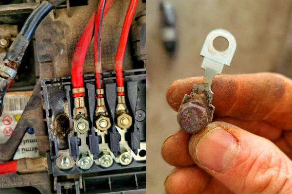 Szokás mondani, hogy az öreg autókban a műszerfalon valami mindig világít, leginkább a „csekkendzsin” jelzés. De mindennek van határa, az öreg VW Bora tulajdonosa már kezdte a fejét vakarni, annyi hibakóddal szórta tele az autója a műszerfalat, hogy már követni sem tudta. Gyorsan elvitte hát szervizbe az autót. Ott elsőként kiolvasták a hibakódokat: volt bőven. Ami feltűnt a szerelőknek, hogy egymástól független hibakódok szerepeltek a listán. Általában, ha több hibakódot dob fel egyidőben egy autó, azok között szokott lenni összefüggés: például rossz gyertya miatt küldhet egyszerre az autó gyújtáskimaradásról, gyújtás-feszültségesésről, trafóhibáról és lambdaszonda hibáról is hibaüzenetet. Na de a Bora esetén összevissza üzenetek érkeztek. Emiatt úgy döntöttek, hogy fizikailag átnézik a kábelezést valami komolyabb kontakthibára gyanakodva. A megérzésük jó volt, a biztosíték táblát kiemelve, a hátoldalán már szenesre égett környezetű kábelcsatlakozást találtak. Vélhetően korábban valaki az előírtnál nagyobb ellenállású biztosítékot használt ebben az áramkörben. Új csatlakozó felszerelésével visszaállították a gyári állapotot, így a Bora abbahagyta a fals hibajelek küldését. Ez esetben minimális volt az alkatrészköltség, a szervizdíjat a hibakeresés és a kocsi szét-, valamint összeszerelése alakította.