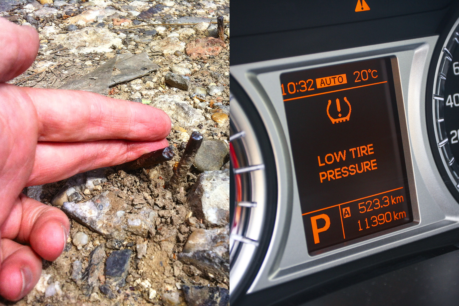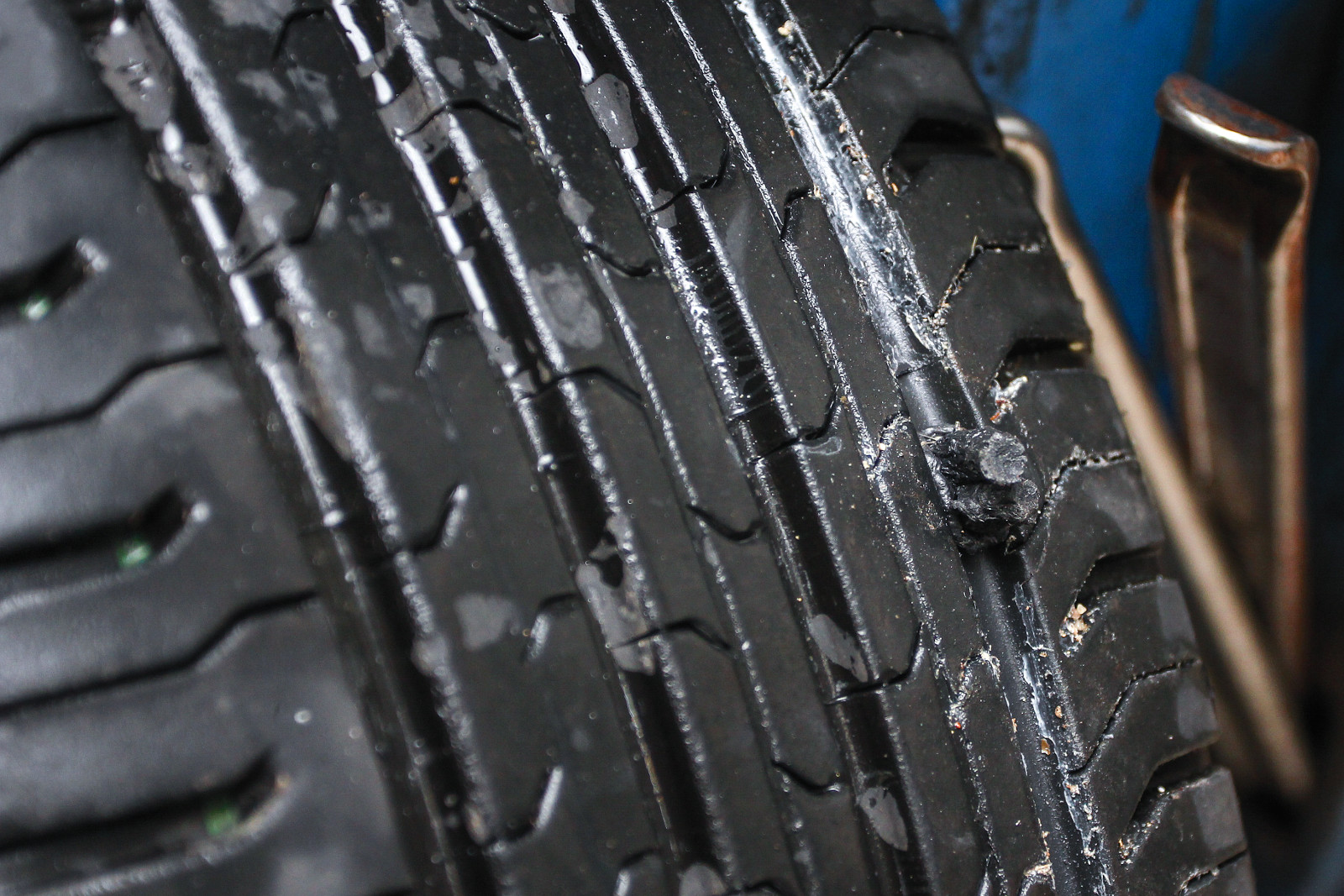Nemrégiben ismét egy defektjavítós autóval sikerült összeszedni egy gumisérülést. Gyorsan eresztő fajta volt, de nem vágott, hanem szúrt sérüléssel. Utólag sikerült megtalálni a talajból kiálló betonvasat, ami átszúrta a gumi futófelületét. Mivel a nap már lemenőben volt gyorsan kellett cselekedni. Előbb leállás sík területre a meredek utcából, ekkor még kb. 1 bar nyomás volt az abroncsban – a fedélzeti guminyomás-ellenőrző rendszer pontosan dolgozott.