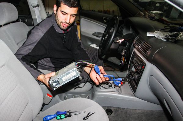 A beszerelés viszonylag egyszerű. Igaz, ez attól is függ, hogy mit szeretne a tulajdonos. Esetünkben a teljes elrejtés volt a cél, így ilyen irányban haladt a beszerelés. Minden a fejegység kihúzásával kezdődött. Egy használt autónál ilyenkor érik meglepetések a szerelőket, amelynek oka általában, hogy korábban is „mókoltak” az autóval. Most egy egykori kihangosító beszerelésének öröksége maradt hátra, néhány felesleges kábellel. A bekötési ábra szerint kellett egy táp, ami gyorsan meglett. A rejtett elhelyezés miatt egy USB-hosszabbító kábel is bekerült, ennek az egyik végét a készülékhez csatlakoztatták, a másikat kivezették a fejegység alatti tárolórekeszbe – itt lehet a pendrive-ot kényelmesen csatlakoztatni. Mivel a BT betűjelű készülék a vezeték nélküli kapcsolat lehetőségeit kihasználva telefonkihangosítóként is funkcionálhat, felmerült ennek a lehetősége is. Ehhez a gyártó egy hosszú kábelt és egy mikrofont is mellékelt. Azonban a tulajdonos ezt nem kérte, így ezek a dobozban maradtak. A csomagtartóban dolgozó CD-tárat lekötötték (ez az áldozat a fejlesztésért), majd a csatlakozója helyére költözött a Dension típusspecifikus csatlakozója. Ehhez persze vásárláskor ellenőrizni kell, hogy az adott autóhoz használható-e az eszköz, ebben segítség a gyártói honlap tévesztésmentes felülete, ahol még a kompatibilis fejegységek fotója is szerepel. A kék dobozka kapott egy zörgés és sérülés elleni vékony habszivacs csomagolást, majd beépítették a légkondicionáló vezérlő panelje mögé, ott bőven volt hely. Ezután jött a próbaüzem, még a félig kihúzva hagyott fejegységgel. Minden működött, így a magnó is a helyére került, immár egy ma joggal elvárt funkcióval is bővülve.