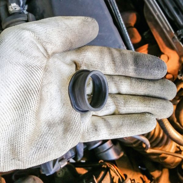 A pumpa szűrt levegőt szív, ehhez a szívóoldali cső a légszűrőház szűrő alatti részébe csatlakozik. Műanyag házhoz egy műanyag idomcső kapcsolódik gumitömítéssel amelynek a kialakítása olyan, hogy ne csússzon le a csőcsonk. Itt azonban le volt csúszva, elsőre nem feltűnően, mert „mintha a helyén lenne” állapotban volt. Tudni kell, hogy a kocsi nagyobb szervizbeavatkozás részese volt a közelmúltban, amely során ezt a segédrendszerét is szétbontották. A csövek szétcsúszásának az oka, hogy visszaillesztéskor a tömítő gumigyűrű elmozdult, a csővég vélhető felerőltetésével a tömítés összegyűrődve hátramozdult a csőben és megakadt keresztben. Ezzel a hibával az a probléma, hogy ekképp ki tudja, mióta a motor szűretlen levegőt is szívott. Hiszen miután lecsúszott a másodlagos levegőrendszer szívócsöve a légszűrőház csőcsonkjáról, ott feltárult egy 20 forintosnyi nyílás. Ezen vidáman szívhatta a levegő a motort, már csak azért is, mert innen a szűrő jelentette ellenállás hiányában könnyebben is áramlott be a levegő. A tömítés kibányászásával a cső torkából és a helyére illesztésével ez a hiba egyszerűen volt javítható.