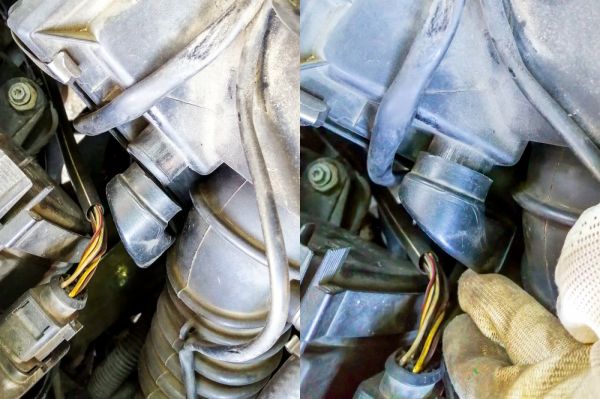 A hibára ismét a sárga „check engine” lámpa felvillanása, és a kód kiolvasása hívta fel a figyelmet. Ez a lámpa ok nélkül ritkán gyullad fel, így elkezdődött a hibakeresés, először is a hibabehatárolás, ami a rendszer működésének csekkolásával indult. Látszólag minden rendben volt, hidegindítás után bekapcsolt az elektromos levegőpumpa, rövid üzem után pedig szépen lekapcsolt. Viszont a hibajel pár nap után makacsul visszatért. A szóban forgó típusnál a motorvezérlés a kipufogógáz összetételéből következtet a hibára, így el kellett kezdeni a nem elektronikus hibakeresést. A kiindulási pont az elektromos pumpa volt, már csak ezért is, mert az autó a pumpa működési ideje alatt, gázadásra (alapjáraton nem) elöl kifújt a kipufogórendszer, vagy legalábbis olyan hangot produkált. A feltételezés szerint esetleg a vezérlőszelep ment tönkre, bár ennek ellentmond, ha a pumpa működése alatt van kifúvás, utána nem, akkor a szelep bizony jól működik. A pumpából két cső ágazik ki, az egyiken szív, a másikon fúj a szerkezet. Végül mindkettőnél találtunk problémát a házi hibaelhárítás során.