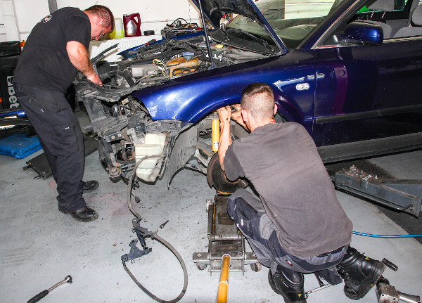 Felül is bontogatni kell, hogy kijöjjön a gólyaláb: Fotó: Dombóvári Mihály A sportfutómű kicsit össze is kapcsolódott az „ültetés” fogalmával, pedig nem fedi a kettő egymást, az utóbbi csak része lehet a sportfutómű-építésnek. A gyártók sport, vagy sportos modelljeikben az alaptípushoz képest 15 mm-es ültetést szoktak alkalmazni – ez még „útkonform”. A tuningcégek sportkészletei átlagosan 30-40 mm-t engedik lejjebb a kocsi hasát, az állítható készletekkel ez 60 mm-re is fokozható, ami lényegében pályahasználatot feltételez. Van persze olyan mértékű ültetés is, ami már rontja a kocsi sajátkormányzási tulajdonságait, mivel a lengőkarok nem a tervezett helyzetben kényszerülnek dolgozni.
