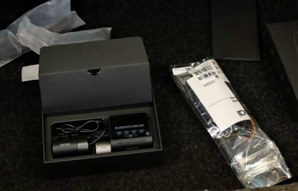 Az első szélvédőre is ragasztással került fel a kamera, itt is alapos tisztítás és melegítés után. Az első kamera tápkábelét is behúzták, így mindkettő feléled, amint gyújtást kap az autó. A két menetrögzítő kamera kapott még egy kiegészítő elektronikus egységet és egy G-szenzort. Ezeket pedig azért, hogy parkolási helyzetben is rögzítsenek, ha lökés éri az autót, a kamerák tápot kapnak és beindulnak, így felvehető, hogy ha a magára hagyott autónak például parkoláskor valaki nekimegy. A plusz elektronika pedig az akkufeszültséget figyeli, és pihenő helyzetben csak akkor ad tápot a kameráknak, ha megfelelő a feszültség.