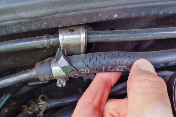 Vélelmezhettem, hogy a mostani csőnek sincs belül baja, azonban ez egy 60 cm-es szakasz a motor felett futva. Tehát elkezdtem kutatni a megoldások után, emiatt elmentem Dunakeszire, ahol van egy „csőspecialista”, már gyártottak nekem BMW E30-ashoz automatikus sebességváltó olajhűtéscsöveket. Megosztottam a problémát, és végül egy erősített hidraulikacső megvásárlása mellett döntöttem. Ez anyagjellemzőivel a legjobban hasonlít a gyári kivitelű csőre, így beszereltem az összerepedezett helyére. Most a próbaüzemét éli, és ha beválik a megoldás, amire nagy az esély, akkor ugyanezen csőből készíttetek egyet fittingelt véggel, mert vélhetően a gyár sem véletlenül használt menetes kötést a benzinhíd felőli oldalon. Egyébként szétvágtam a leszerelt, kívül repedezett csőnek egy darabját, de belül ez is épségben volt.