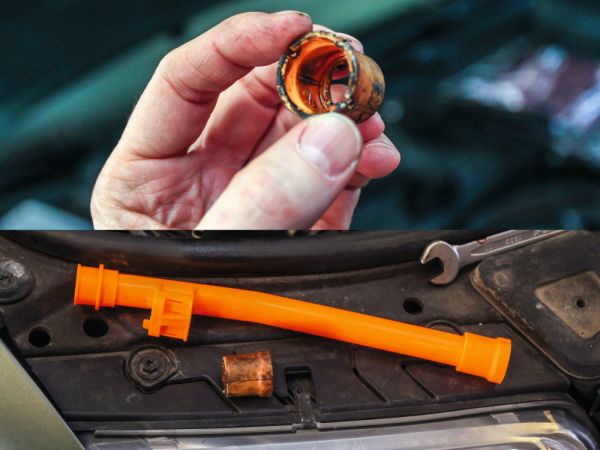 A szűrők cseréit követte az olaj leengedése, majd jött a karter aljára szerelt szintjeladó cseréje. A fészket is megszabadították a lerakódásoktól, és úgy került vissza az új. A leeresztőcsavar tömítését sem cserélték a korábbi olajcserék folyamán, így oda is új tömítőgyűrű került. A nívópálca hüvelyének törése jellegzetes hiba a VW-blokkokon. A korábbi lemezhüvelyt váltó műanyag alkatrész korosodva megrepedezik, törik, és a motor főképp magas fordulatszámokon kinyomja az olajat a repedéseken. Az alkatrész olcsó, de a csere macerás, mert a hosszú, csigavonalban tekeredő szívócsőtől nehéz a hozzáférés. Nívópálcából is újat kapott az autó, mert annak a kihúzógyűrűje volt letörve.