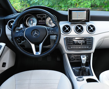 Mondjuk nincs nehéz dolga az autóval, hiszen a CLA szép. Nagyon szép. Már azzal is el lehet tölteni üres félórákat, hogy az ember egyre újabb, mesterien kivitelezett részleteket fedez fel az autó külsején, vagy épp belsejében. Például a műszerfal átlátszó betétje, amelynek felületére fényeztek mintát, árnyékot vet az alapon – a tapintás után is alig hiszi az ember, hogy optikai csalódás áldozata csak, és nem recés a műanyag. A tapogatózás egyébként is hasznos érzékelési módszer az autóban, különösen a hátra beszállóknak érdemes előbb felmérniük, melyik irányba mennyit nyújtózkodhatnak. Annál tágasabb az autó, mint amit kifelé mutat, de abszolút értelemben azért szűk a második sor, nem csak a feláras üvegtető miatt lejjebb került tetőkárpit okán. Az első sorban már van elég hely, itt a problémát a megközelítés, vagyis az alacsonyan futó tetőív jelentheti.