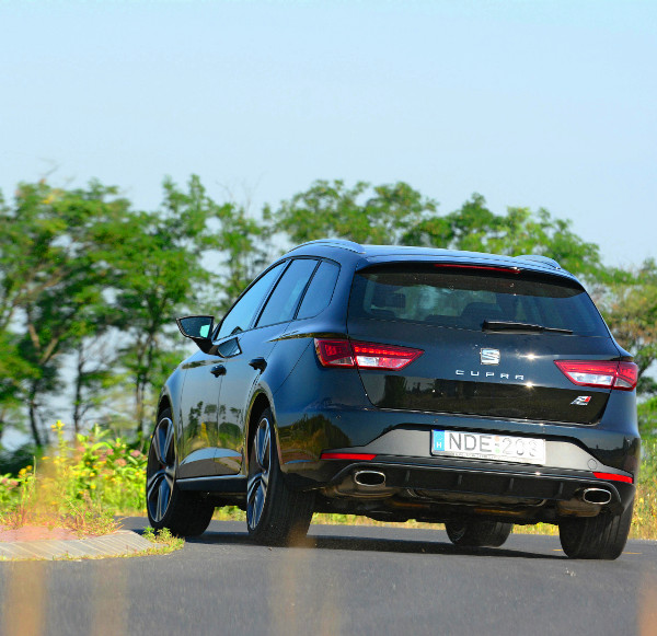 Kompakt kombi, fekete szín, semmi szárny vagy tátongó levegőnyílás, finomkodó motorhang. A járókelők és a forgalom többi szereplője sem kapja fel a fejét e Leon láttán, pedig a szolid köntös mögött 280 lóerő, 350 Nm nyomaték és elektronikus vezérlésű differenciálzár vállalja magára a munka oroszlánrészét. A kettősség nem véletlen, hiszen a gyár a hétköznapokban is jól használható autót vizionált, de olyat, amelyik a sofőr igénye szerint pillanatok alatt képes vérbeli sportkompaktként viselkedni. A Leon ST Cupra hozza is a „kötelezőt”: a szürke hétfő-péntek ingázásban majdhogynem unott közönnyel látja el feladatát, ha azonban már nemcsak a munkába járás a teendő, széles vigyor ül ki az arcára. Ja, persze a vezetőnek is!
