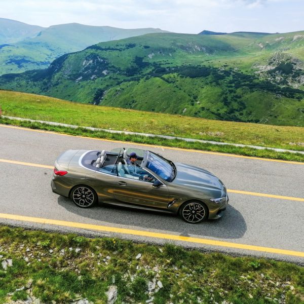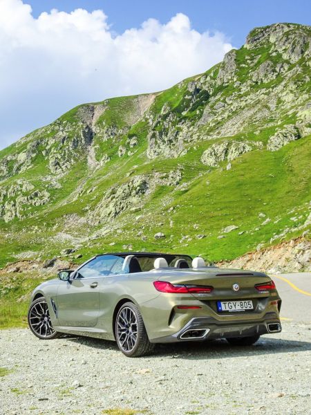 Üléseiben meg sem lehet érezni egy 500 kilométeres utat, pedig szinte egyhuzamban jutottunk el a 67C jelű országút kiindulópontjáig, Szászsebesig. A kiváló minőségű – egy rövid szakasz kivételével – frissen épült A1-es autópályán haladva volt időnk tanulmányozni az új, 12,3 colos képernyőn keresztül (is) működtethető központi rendszert, és meg kellett állapítanunk, hogy még mindig az iDrive-val lehet a legkönnyebben navigálni a különböző funkciók között. Nem biztos, hogy a kabrióhoz jó választás a 253 300 Ft-ért kínált, üvegből készült tárcsa és váltókar, mert ha a tető nyitva van, a napfény erősen csillog a felületén. Az autópályáról letérve nem is vártunk a kabriózással, már csak azért sem, mert a Nap már lemenőben volt. Kissé magasan beépített műszerfala és lapos szélvédője mögött bár megtaláltuk az ideális vezetési pozíciót, miután a vászontető eltűnt a két utas számára kellemes méretű csomagtartóban, felüdülést jelentett a korábbinál intenzívebb szabadságérzet. Az oldalablakokat és a szélfogót felhúzva minimális szellőtől borzolt hajjal érhető el az optimális helyzet az M850i Cabrióban. Szemünk sarkából látjuk az ablakkeretet, és érezzük, ahogy kibővül a látóterünk, közelebb kerülnek a táj illatai, hangjai. Egy sűrű fenyves mellett tükörsima aszfalton haladva aligha kívánhatnánk jobbat! A 219 500 Ft-os nyakfűtés és a hangszórókat is magába foglaló hangulatvilágítás már az esti időszakban mutatta meg előnyeit, amikor egyre magasabbra kapaszkodtunk fel közeledve a szállásunkhoz. Már a 67C elnyújtott kanyarjaiban is éreztük, hogy itt teljesedik ki igazán az, amire a BMW képes, de másnap a fő attrakciónak számító, szűk kanyarokkal és elképesztő visszafordítókkal teli szakaszon még mindig tudott meglepetést okozni.