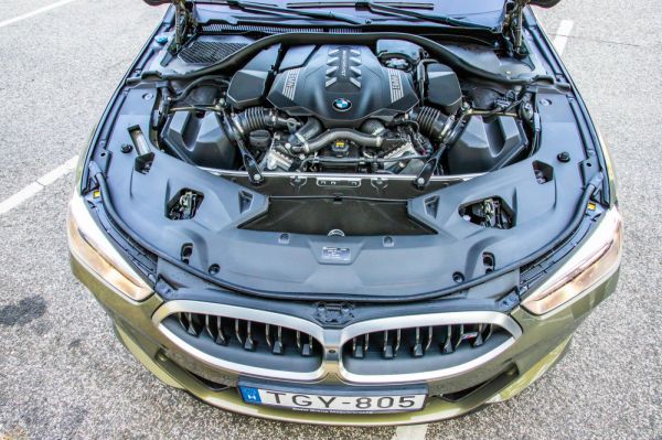 Az nem vitás, hogy egy ilyen konfiguráció természeténél fogva hosszabb utazásokra született, a zsúfolt városi forgalomban azonban egyszerűen nem érzi jól magát. Országútra, autópályára kell mennünk vele, szó szerint ki kell szabadulnunk a városból ahhoz, hogy kihasználhassuk a képességeit. Ha csak legális keretek között is, de végre ráléphetünk a gázra, a 8-as szinte fellélegez, kinyújtózkodik és élvezi, ahogy falja a kilométereket. 48 voltos lágy hibrid motorját képtelenség zavarba hozni, német V8-asként magabiztosan, kultúráltan morog, és ha éppen úgy hozza a forgalmi helyzet, lő ki rakétaként kihasználva bőséges, 750 Nm nyomatékát. Az általános kifinomultság nem megy az élmény rovására, gyorsításnál következetesen hallható a BMW-k klasszikus orgánuma a V8-asok jellegzetes hangzásával fűszerezve. Futóműve az autópályás közegben a nagyautók stabilitásával és ringatózó kényelmével járul hozzá a bent ülők komfortjához. Bármennyire eltalált a kis erőszükségletű, mégis precíz kormányzás, egy hosszabb út során jól jön a radaros tempomat és a sávtartó közreműködése.
