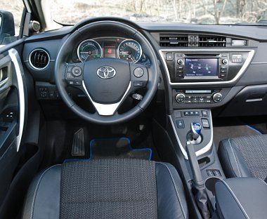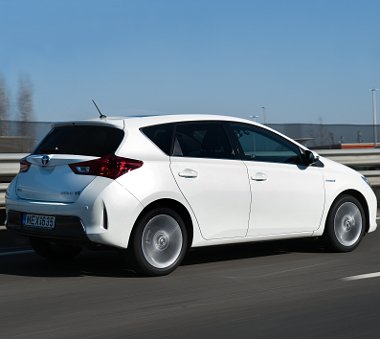 Amíg a legtöbb gyártó még csak kapisgálja, addig a Toyotánál szinte hétköznapinak számít a vegyes hajtás, egy ideje már a kínálat szerves részét képezik a benzines-villanyos modellek. Olyannyira, hogy – a Priust leszámítva – a megtévesztésig hasonlítanak a hagyományos személyautókhoz. Az Auris esetében például a Hybrid feliratokon kívül csupán a grafitszürke lökhárítóbetétek és alufelnik, a kék hátterű márkaemblémák és a LED-es hátsó lámpa különböztetik meg. Belül sincs komolyabb eltérés, csupán a műszeregység és a váltókonzol más, de még a csomagtartó 360 literes mérete is megegyezik – persze ehhez a nikkelmetál hidrid akkumulátorcsomagot átpakolták a hátsó ülések alá. Bővíteni egyszerűen lehet, a 60:40 osztású üléstámlák ledöntéséhez még a fejtámlákat sem kell kiszerelni.