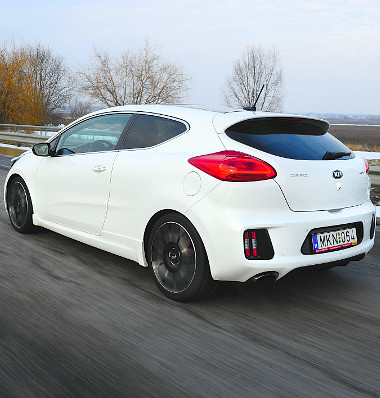 A csomagtérajtó nyitása nedves időben garantáltan összekoszolja a kezünket, ilyen körülmények között a fix, külső házas tolatókamera is használhatatlan, még jó, hogy van hátsó radar. Az ülésfűtés három fokozatban állítható, de a maximumon is elég lassan melegszik be, nem úgy a kormánykerék fűtése, mely fél percen belül már érezteti jótékony hatását. A xenonlámpák széles sávban, jó fényerővel világítják meg az utat. A pro ceed a jó ár-érték arányán kívül nem teljesen fegyvertelen a „kemény maggal” szemben. Talán a legnagyobb ütőkártyája a dögös megjelenés, mely nélkülözi a felesleges agressziót, ugyanakkor teli van sportos és igényes részletekkel. A szélekre húzott, jégkockákra hajazó LED-es menetfények például kifejezetten vagányak!