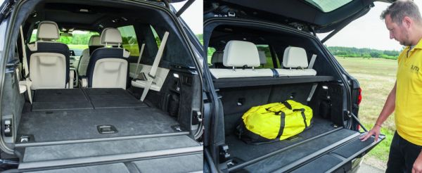 Az sem mellékes, hogy az X7-es berendezése jóval modernebb, az ember elsőre csak ámul-bámul, hogy az anyaghasználat és az egyes részletek kidolgozottsága milyen magas szintet képvisel. Szóval, amikor ott ül az ember a volánnál, tényleg kezdi érteni, hogy a 7-es típusjelzés abszolút jogos! Bár a felépítéséből adódóan az üléspozíció értelemszerűen más, mint egy laposabb limuzinban, az ülések elöl nagyon komfortosak. A középső sorban két fotelt kínáló verziónál sem lehet panaszunk az ülések formázottságára vagy kialakítására, de azért e tekintetben nem veheti fel a versenyt a hosszított 7-essel, pedig a multimédia-rendszer, a kartámaszok, a masszázsfunkció és az USB-töltők sem hiányozhatnak a felhozatalból. Egyszerűen kevesebb a mozgásterünk és nem tudjuk annyira hátradönteni a foteleket. Az X7-es nagy előnye bármilyen luxuslimuzinhoz képest nyilvánvalóan az, hogy plusz két főt is szállíthat a harmadik sorban úgy, hogy 300 liternél nagyobb raktér marad. Leghátul ülve ugyan fel kell kicsit húzni a lábunkat, de átlagos méretű felnőttek könnyedén elférnek.