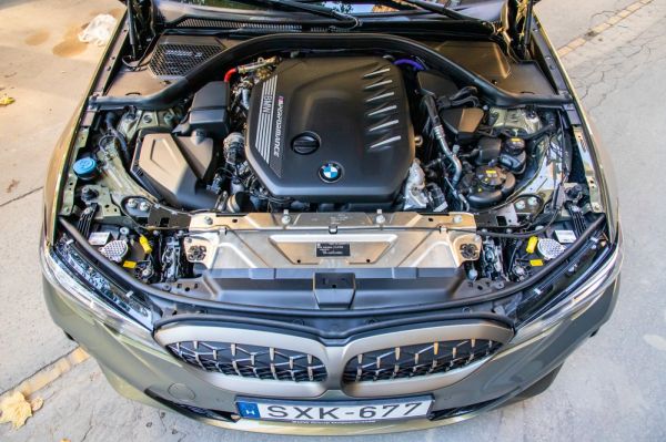 Eredeti filozófiáján túl a dízelmotorok mellett is kitartott a BMW. A kínálatukban a 316d-től a tesztelt 340d-ig 5-féle gázolajos szerepel 8 különböző változatban. Lehet, hogy a 4 hengeres, 190 lóerős 20d minden igényt kielégít, mégis attól lesz a szemünkben igazi BMW, hogy többet tud annál, mint ami feltétlenül szükséges. A 3,0 literes, 6 hengeres, két turbófeltöltővel lélegeztetett dízelmotor 340 lóerőt és elképesztő, 700 Nm nyomatékot ad le, takarékos, tiszta üzemét 48 voltos lágyhibrid technológia támogatja. Az adatoknál sokkal többet árul el a kvalitásairól a kifinomult járása, a belül is hallható, jellegzetesen turbinaszerű hangja és az M-es modellektől elvárt jól adagolható, de kifogyhatatlannak tűnő ereje. Ahogy az xDrive összkerékhajtás, úgy a 8 fokozatú automatikus váltó is alapáron jár, válogatni nem lehet, igaz, ennél jobb összeállítást nehéz elképzelni. A hidrodinamikus szerkezet csak lesi a motor és persze a sofőr kívánságait, akár az Eco Pro, akár a Sport Plus üzemmódban van a hajtáslánc, mindig a körülményekhez igazodik. A 48 voltos indítógenerátornak köszönhetően finoman indul újra a rendszeresen le-lekapcsolt motor, és a visszatöltést is jól menedzseli az elektronika. Nem hiába spórol, az elsősorban országúton és autópályán elért 6,0 literes átlag legalább olyan mesés, mint a képességei. A 3-as a Touring karosszériával is a kategória egyik legsportosabb tagja, első osztályú futóműve még éppen annyira feszes, hogy ez ne zavarja a bent ülőket. A kissé szintetikus, viszont kiemelkedően precíz és gyors kormányzással együtt ujjgyakorlatként produkálja a sportos BMW-kre jellemző vezethetőséget, de utazóautóként is beválik.