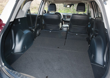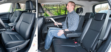 A RAV4-es igazi fórja a kifejezetten szellős kabin és a tágas, könnyen átrendezhető raktér. Elöl mélyebbre süllyeszthető és magasabbra emelhető az ülés, mint elődjében, ráadásul mind a lap (+20 mm), mind pedig a támla (+30 mm) megnőtt. A kormány is jobban kézre áll, és tágabb tartományok között szabályozható. A második sorban akár három felnőtt is elfér, a padló gyakorlatilag sík, a vállszélesség is jó, a támla pedig a kívánt pozícióban rögzíthető.