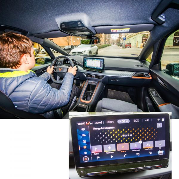 A nettó 58 kWh kapacitású akkumulátorral 424-395 km-es WLTP-hatótávolságot ígérnek, nekünk 270-290 km-t jósolt a fedélzeti számítógép, ebből lejön 50 km, ha bekapcsoljuk a fűtést, igaz, ezt vissza is adja, miután letisztulnak az ablakok és az ülés- és kormányfűtésre hagyatkozunk. A nagyobb, nettó 77 kWh kapacitású akkumulátor csak az eBoost változatnál (231 LE, + 172 720 Ft) kérhető további 1 239 520 Ft megfizetésével. A 16 milliót meghaladó indulóárral és a drága extrafelszerelésekkel érezhetően a prémiumszegmensben keresi a vásárlóit a Cupra első villanyautója.