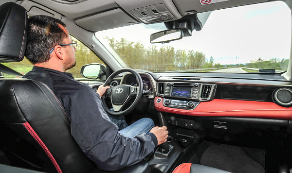 Szorult helyzetben a 4WD Lock gombbal 40 km/órás sebességig zárható az 50:50 arányú nyomatékelosztás, valamint visszagurulás- gátló és lejtmenetvezérlő segíti a vezető dolgát. Persze a laza terepnél merészebb kalandokra így sem alkalmas a RAV4-es, összkerékhajtása inkább a rossz időjárási körülmények közötti magabiztos továbbjutást szolgálja. A műutas felhasználási területre utal az is, hogy a szervokormány rásegítésén és a gázreakciókon kívül a Sport üzemmód erre is hatással van: az alulkormányzottsági hajlam csökkentése érdekében már az első kormánymozdulatra a nyomaték 10%-át hátraküldi. Mondjuk sportos így sem lesz, inkább csak kellemes a Toyota vezetése.