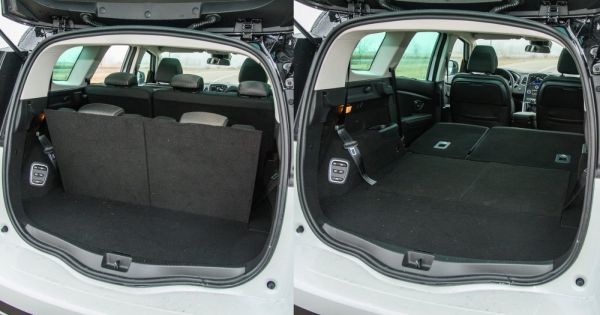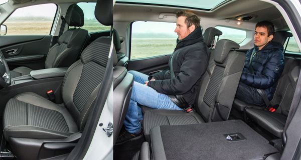Ugyan az Espace erős kisugárzásával nem vetekedhet, egészen komoly kiállású a modell, amely 74 mm-rel hosszabb elődjénél. 4,63 méterével tehát egyáltalán nem kicsi, amikor beülünk a második sorba, mégsem érezzük, hogy tágasabb lenne. Nincs olyan térérzet, mint egy Citroën C4 Grand Picassóban, ami azért nagy kár, mert az ülések egyébként kényelmesek. Állandóan visszatérő kritika az egyterűeknél az ülések szerény formázottsága, a Renault-ban azonban elöl kényelmes, masszázsfunkciós fotelünk is lehet. Ami a negatívumokat illeti, a első üléseket úgy alakították ki, hogy hátul ülve egyszerűen nem fér be a lábfejünk alá, és a korábbi Scenicekkel ellentétben már nem különálló székekből áll a második sor. Bővítéskor ugyan a padlóba süllyeszthetők az ülések, de már nem vehetjük ki, mint az elődnél. Az sem mellékes, hogy az új modellnél csak a két szélen találunk gyerekülés-rögzítési pontokat, a felmenőnél bizony mindhárom hely isofixes volt. S hogy milyen leghátul ülni? Senki sem tud csodát tenni ebben a kategóriában, az alapáron kínált harmadik sori ülések gyermekeknek vagy kisebb termetűeknek ajánlhatók, és nekik sem hosszú távra. A csomagtér kapcsán fontos, hogy a Renault itt sem feledkezett meg a gombnyomásra ledönthető ülésekről (pl. Espace), illetve hogy öt üléssel 533 literes a kapacitás – ez a befogadóképesség szabadidős használatban tökéletes partnerré teszi az autót.