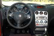 Az igazat megvallva nem sokat vártam tőle a sajtóinformáció alapján. Közvetlen benzinbefecskendezéssel mások is próbálkoztak az utóbbi időben, elsősorban a fogyasztás és az emisszió leszorítása céljából – de az elért eredmény nem nyújtott valódi kárpótlást a kissé visszafogott teljesítményért. Még senkit sem láttam, akit fellelkesített volna egy ilyen „szegény keverékes” motor. Pont ez kellett egy Alfába? Persze, állítják, hogy „alfásan” használták ki az elvben rejlő lehetőséget, de akkor is… Szóval kicsit szkeptikusan közelítettem hozzá, de már a puszta formájától, a felfrissített karosszéria nemes arányaitól és ragyogó részleteitől kezdtek meginogni tartózkodásom bástyái. Az első néhány kilométer után aztán végképp romba dőltek. Egy nap múlva beleszerettem az autóba. Úgy is maradtam. Ez a motor ugyanis fenomenális! Például meg lehet vele tenni, hogy gázadás nélkül, alapjáraton elindulunk és felkapcsolgatunk ötödikig, amikor is 23 km/órával gurul az autó. Ekkor finoman odalépünk, és egyetlen, folyamatos, eleinte szerény, majd viharos, de még a végén is élénk gyorsítással megyünk fel 220-ig. A 2.0 JTS igazából egy benzin- és egy dízelmotort egyesít magában. Olyan alacsony fordulatszámokon járhatunk vele, mintha dízel lenne, 1500 és 2500 között remekül autózgatunk városban, országúton és sztrádán. Azonnal, határozottan ugrik meg, egyszerűen nincs értelme visszakapcsolgatni. Szinte úgy érezni, mintha nagyobb lökettérfogatú automata kocsit vezetnénk. Ez az érem egyik oldala. A másik, hogy ahol egy dízel elkezd fulladozni, majd eléri alacsony plafonját, tehát valahol 4000-nél, ott ez simán pörög tovább, 7000-ig. Kanyargós úton ne pörgessük, semmit sem nyerünk vele, a piros mezőt csak akkor közelítsük meg, ha gyorsan szeretnénk utazni. Ha van mennyei autózás, akkor ez az!