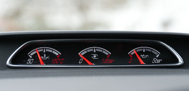 A középkonzol tetejére került kiegészítő műszerek az olajhőmérsékletet, a turbónyomást és az olajnyomást mutatják