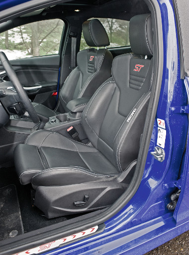 Ha pedig apuka kitette a porontyokat az iskolánál, akkor jut főszerephez a motor: 2522 helyett 2000 cm3-es, öt- helyett négyhengeres, de a méretcsökkenést korszerű technikával ellensúlyozza, így 250 turbólóerőt és 360 Nm-t teljesít! A ferdehátú Focus ST 6,5 másodperc alatt futja a százat és 248 km/óra a vége, a motorhangot pedig egyenesen bevezették az utastérbe. Terheléskor nyit egy szelep, s a viszonylag csendes motor egyre harsányabban hörög – azért a sorötös karakteresebb volt. Erőteljes gyorsításkor viszont keményen kell markolni a kormányt, mert a nyomaték csavargatja rendesen, de a változó áttételezésű szerkezet amúgy borzalmasan közvetlen és a rásegítés mértéke is jól eltalált.