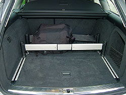 Igaz ugyan, hogy az A6 Avant praktikumát az is sokra értékelné, akinek a szállítás a munkája. A csomagtérajtó magasra nyílik, és az autó teljes szélességében feltárja az alaphelyzetben 565 literes poggyászteret, amit sima, függőleges falak határolnak, s nem bontja meg sehol a kerékdob belógása – vagyis az autó hátsó traktusából valóban minden köbcentiméternyi tér kihasználható. Ráadásul a poggyásztér 1660 literig bővíthető, igaz, némi munka árán, mert nemcsak az üléseket kell ledönteni, hanem két súlyos fémhengert is ki kell emelni a helyéről. Az egyik a csomagtérrolót rejti magában, a másik pedig a csomagtér-elválasztó hálót; mindkettő több kilót nyom, vagyis nem könnyű egyedül bűvészkedni velük. Ám súlyuk komoly masszivitást is ígér, ami jól jöhet egy vészfékezésnél vagy netán balesetnél, amikor ezek a fémrudak
