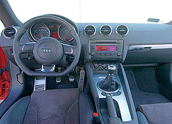 A pilótafülke hozza az Auditól megszokott magas nívót. Elsősorban a kezelőszerveket modernizálták, a belső környezet a jóleső klausztrofóbiával együtt ismerős az elődből. Meglepő volt látni, hogy jól megtermett, 185 centiméter magas barátom milyen kényelmesen elfér az autóban. Az ülések tág határok között állíthatók, s megfelelően tartják a testet. A bőr/alcantara kombináció viszont a 2.0 TFSI-hez feláras, ahogyan az alumínium dekoráció is. Igazság szerint két személyre méretezett a TT. A hátsó utasokat nem is látják szívesen, tesztautónknál például az ülések nem csúsztak előre a ki- és beszállás megkönnyítésére. Érdekességként említeném meg, hogy a hátsó szükségüléseket 3. osztályú gyerekülésként (125-150 cm) is hitelesítették, így nem kell külön gyerekülést használni. Csak győzzük megmagyarázni ezt a rend éber őreinek! A csomagtartó gond nélkül elnyeli a két utas utazóbőröndjét, ráadásul az üléstámlák ledöntésével egészen 700 literig bővíthető.