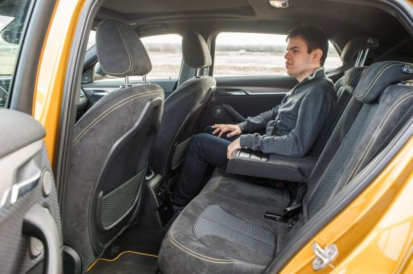 Az X1-eshez képest laposabb karosszéria ellenére elegendő a fejtér, míg a lábtér egyenesen nagyvonalú, legalábbis a 4360 mm-es hosszúság fényében mindenképpen. Az egész abban rejlik, hogy hiába kurtább az X1-esnél 8 centivel, az azonos tengelytáv miatt nem érződik szűkösebbnek. A kupés felépítés hátránya inkább abban rejlik, hogy nem csúsztathatjuk sínen a hátsó üléseket, emellett a raktér kisebb befogadóképességű (-35 liter). No meg az is tény, hogy a körkilátás korlátozott, így a tolatókamera megrendelése erősen ajánlott. Ami a vezetői környezetet illeti, közel sem volt akkora mozgástere a tervezőknek, mint a külsőnél. A jól megszokott elemekből építkezik a modell, itt nincs vetített kijelzős műszerfal, mint a nagyobb típusoknál, viszont a középkonzol úgy fordul a sofőr felé, mint számos klasszikus BMW-ben.