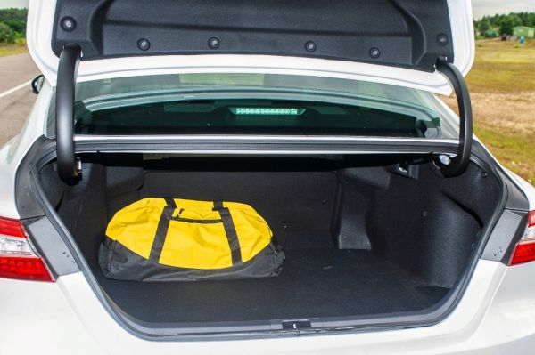 Cserében a Camry értékei is hagyományosak! Bár az első ülések oldaltartása csekély, kényelmes utazóautó a nagy Toyota, a tárolóhelyek mellett a hellyel is bőkezűen bántak, hátul óriási lábtér fogadja az utasokat. A tesztre fogott Executive VIP verzióban még a hátsó ülések dőlésszöge is elektromosan állítható, a könyöklővel lehajtható vezérlővel pedig állíthatjuk a légkondicionálót, vagy akár a hátsó rolót is. A csúcsmodellnek egyetlen hátránya van, mégpedig az, hogy a csomagtere nem bővíthető, ez esetben meg kell elégedni az 500 literes alapkapacitással. Óriási a bendő, az biztos, de a fedélnek két hatalmas zsanérja van, melyek sokat elvesznek a hasznos térből.