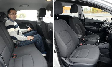 Beszállva már fejben sem szűkös a Rio, de hátul is inkább csak két utasnak kényelmes. Elöl picit rövid az ülőlap és szerény a feszes tömésű ülések oldaltartása