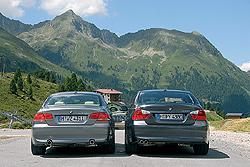 környezet, a belső design ismerős, minden finoman működik, ösztönösen kézre áll, a tiroli Alpok szerpentinjein és falucskáin pontosan kalauzol a navigáció. A menetpróbára csatasorba állított 335i modellek palettájáról elsőként a hatfokozatú manuális sebességváltóval társított verziót vezettem, az új szoftverrel és hidraulikával ellátott Steptronicot szándékosan későbbre hagytam… Vérvizsgálatként szűk, kettes fokozatot igénylő fordulóból gyorsítva határozottan rálépek a gázpedálra, a műszerfalon fel-fel villan a DSC+ kontroll-lámpája, a kocsi fara diszkréten mocorog, a soros hathengeres pedig mohón kapkodja a kövér hegyi levegőt. Szenvednie 2000 méteres magasságban sem kell, hiszen a 3-3