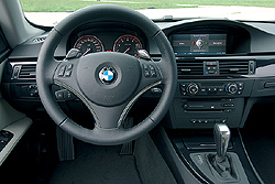 intenzív hegymenet 16 literes adata gyorsan 12 alá szalad – normál körülmények között talán még a gyár által megadott 9,5 literes vegyes fogyasztás is produkálható, de ez a modell nem a kompromisszumokról szól. A menetpróba záróakkordjaként az automata nyomatékelosztós 335i kulcsát kapom kezembe, indítok, a hang ugyanaz. Mivel az elektronika érzékeli a komótos tempót, viszonylag hamar kapcsolja a második, majd a harmadik fokozatot. Feltűnő a váltás gyorsasága és az is, hogy a volánbillentyűkkel is milyen egyértelműen lehet lépkedni. Padlógázas gyorsításkor érzésre ez a fürgébb, de a váltásokat kísérő sportos hang csalóka, papíron a manuális egységnek két tized előnye van, átlagfogyasztásban azonban már egál a helyzet. A Steptronic verzió jóval kényelmesebb, sőt a sportosság sem hiányzik a karakteréből, így – ugyan ellenkezik a kupé sportos tradícióival –