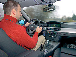 Az utastérben az elődhöz képest kevésbé sportos hangulat fogad, a tudatos tárgyilagosság ugyanakkor jobban illik az E90-es külső formai filozófiájához. A vezető passzentosan ül a vaskos műszerpult mögött, amelyen már nincs feléje forduló középrész, a harmónia azonban nem szenved csorbát – nincs mese, a 3-as eggyel komolyabb, modernebb világba kalauzol. A sofőr egyébként maximálisan a vezetésre koncentrálhat, mivel minden berendezést ösztönös helyen talál, a működtetés egyértelmű és precíz. A navigációs rendszert is magában foglaló, fedélzeti funkciókat egyesítő iDrive (650 300 Ft) kiismerése és használata rácáfol minden rosszízű pletykára. Tudni kell azonban, hogy egy ilyen rendszerrel nem vezetés közben illik közelebbi ismeretséget kötni, ha szánunk rá fél órát a parkolóban vagy a garázs előtt, a legfőbb és naponta használatos (hi-fi, komputer) menük vezérlése már pofonegyszerű, ráadásul a multifunkciós kormánykerékről is számtalan művelet elvégezhető.