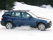 Ide már csak a sífelvonó és a BMW X3 jár. Télisportközpontokban nagyon jól mutat a kicsit magas építésű, dinamikus X3 A “melyik kereket hajtsuk?” klasszikus kérdésre egykerekű biciklin ügyeskedő artista fényképével válaszolt hirdetéseiben a BMW, arra utalva, hogy kormányzást és hajtást csak ilyen extrém esetben lehet ugyanazzal a kerékkel megoldani. Poénnak jó volt, de a bajor márkára hagyományosan jellemző hátsókerék-hajtás attól még nem lett jobb. Látványosan igazolta ezt egy 7-es limuzin, amely az alig arasznyi hóval borított úton szánalmasan vergődve próbált feljutni az ausztriai Rettenbachtal sípályáihoz vezető magashegyi úton. Ugyanakkor, ugyanott teljes könnyedséggel robogtak el más autók, amelyek szintén a kék-fehér propelleres emblémát viselték, de a münchenieknél fújdogáló új szeleknek megfelelően intelligens Xdrive összkerék-hajtással voltak felszerelve. Hát igen, telente nem a lóerők száma a döntő, hanem a hajtás módja, ahogy azt az X3 (száraz menetpróba: AM2003/23; hajtómű leírása: AM 2004/1) téli vezetéstechnikai tréninggel összekötött menetpróbája fényesen igazolta.