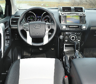 A facelift során a repertoár része lett például a Toyota Touch 2 & Go multimédiás-navigációs fejegység is, melyen a hazai fejlesztésű iGO szoftver fut. A térkép adatbázisa korrekt, a grafikája szép, és frissítésre is van lehetőség. A kabinban új kapcsolók, műszerek, fiatalosabb színkombinációk, 4,2 colos TFT központi monitor és átalakított középkonzol találhatók. A kétszínű bőrkárpit látványos, azonban egyes műanyag elemek nem ütik meg az elvárt nívót, találni sorjás éleket, a sokféle felületi kialakítás és szín pedig nem valami harmonikus. Menet közben a második sori ülések utasok nélkül zörögnek, rezonálnak, az új Optitron, körbarázdákkal ellátott hátterű kijelzőkön pedig éjszaka, az utcalámpák fénye propellerszerű mozgással tükröződik. Terepen és városban is hasznos a kormányról aktiválható első, hátsó, vagy oldalnézeti kamera. A klímapanel alatt kapott helyet az új, nagy méretű forgókapcsoló, ami a Multi-Terrain Select rendszer kezelésére