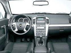 A műszerfal kissé fantáziátlan, a felhasznált anyagok is lehetnének igényesebbek. Ugyanakkor a kidolgozás minősége korrekt, s a tervezők számos jól használható pakolórekeszről gondoskodtak. Nagyvonalú a Captiva felszereltsége is: a távirányítású központi zár, az elektromos ablakok és tükrök, a manuális légkondicionáló, a hat légzsák, az automatikus szintszabályozás és a lejtmenetvezérlés már az LS belépőmodellnél szériatartozék.