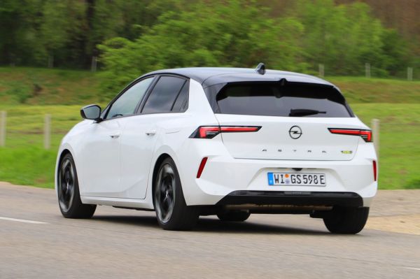 Örök klasszikus a fekete-fehér színkombináció, egyedül ez menti meg a forgalomba „szürküléstől” az Astra tesztautót, no meg az esztergált felületű 18 colos felnik, amelyek messziről szemet szúrnak. Határozott vonalak utalnak klasszikus Opelekre, egy kis hunyorítással az egykor ralipályákat uraló (és a Stellantis révén egy konszern- esernyő alá tartozó) Lancia Delta Integrale vonásait is fel lehet fedezni, miközben a lámpák már inkább volkswagenesek. Feltűnő a függőlegesen álló pótféklámpa, amelyre önkéntelenül is odapillant az Astrát követő autós.