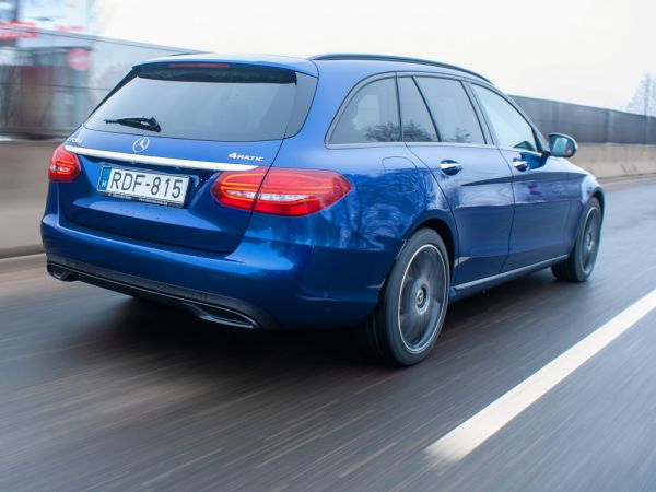 Azok az extrák pedig, amelyek korábban az S-osztály kiváltságai voltak, már a C-osztályhoz is elérhetők. Nem csak dugóban képes araszolni és sávban tartani az autót (tényleg jól működik), hanem 64 árnyalatban állíthatjuk a belső hangulatfényét, és ha kell, a 84 didódából álló Multibeam-LED fényszóró világítja be előttünk az utat a szembejövők vakítása nélkül. Persze ezek, vagy akár a most megjelent digitális műszerfal nélkül is azonnal szembetűnik a C-osztály magas általános minősége, az index kattanása, a klíma huzatmentessége és az ülések kényelme önmagáért beszél. Nekem a kiálló központi kijelző továbbra sem a kedvencem (a nagyobb Mercedesekben szépen egybefolyik a műszerfallal), de az már ízléstől abszolút független, hogy a kormánykeréken lévő érintésérzékeny felületekkel való babrálás menet közben túlzott koncentrációt kíván a vezetőtől. A helykínálatot és a kombi változat 490 literes rakterét sem érheti kritika, a csomagtér használhatóságát akasztófül, gombnyomásra ledönthető ülések, rögzítőháló és fedéllel együtt mozgó roló könnyítik meg.