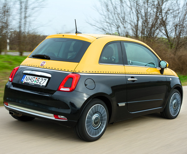 Minden eddiginél több lehetőséget kínál a Fiat arra, hogy a nemrégiben megújult életstílusminijét saját ízléséhez igazítsa a kedves vásárló. Ezek között találjuk a tesztautón látható kétszínű megjelenést is. Ezt csak azért emeljük ki, mert a sárga-fekete fényezés meghaladja a magyar hatóságok tudását, a forgalmiban „kék”-nek titulálták az autót. A rendszám alapján a központi nyilvántartást ellenőrző VÉDA-rendszer meg majd automatikusan jelez…