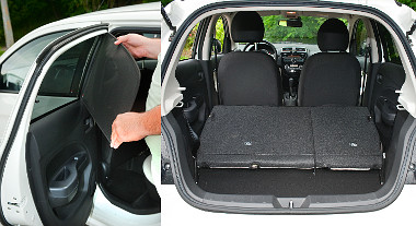 Az alaphelyzetben 235 literes csomagtér is dicséretes, bővítése egyszerűen megy a hátsó támlák döntésével, a csatot az oldalfalon elhelyezett sliccbe rögzítve eközben nem kell küzdeni az övvel sem. A művelet végrehajtása után azonban egy igen nehezen pakolható tér alakul ki, hatalmas lépcsővel a közepén.