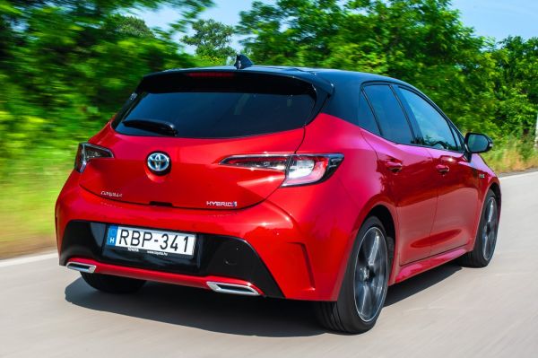 Kétféle öntöltő hibrid hajtást is kínálnak a Corollához, összehasonlításunkban mindkettőt próbára tehettük. Az 1,8 literes benzinmotort használó rendszer a legutóbbi Priusban debütált – a korábbiakhoz képest csökkentették a bolygóműegység méretét –, és először kerül lépcsős hátú Corollába Európában, a korábbi dízel helyét veszi át a kínálatban. Az 1,6-os, benzines szívómotorhoz viszonyítva 1,21 millió Ft felárat kell fizetni, a CVT-váltós kivitelhez képest már csak 625 ezer Ft a felár – ennyit mindenképpen megér a rendszer. Finoman dolgozik együtt a benzin- és a villanymotor, jól reagál a vezető parancsaira, de a sportos tempót nem kedveli. A normál üzemmód mellett van a nagyobb motorféket biztosító B fokozat, amelyet az előválasztó kar balra billentésével lehet aktiválni, a tesztfogyasztás 5,6 l/100 km volt.