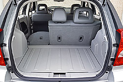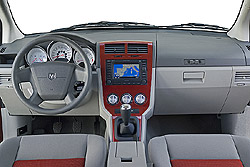 A világos burkolatok mögött temérdek rekesz várja a kisebb tárgyakat. Mély a csúsztatható könyöklő bugyra, a tetejére pedig egy kihajtható, mobiltelefont vagy mp3-lejátszót tartó rekeszt alakítottak ki, melyet rendelésre a kiváló minőségű és hangerejű hifihez csatlakozó kapcsolattal is felvérteznek. Szó szerint hatalmas a három részből álló kesztyűtartó: alsó része egy átlagosnál nagyobb rekesz, a középső, hűtött traktusban akár négy darab félliteres palack is elfér, a felső harmadban pedig térképeket, keskenyebb dolgokat tárolhatunk. Aranyos a pohártartók kék derengéssel megvilágított alapja, mely a műszerfal világításával harmonizál, s megkönnyíti az éjszakai “kávélerakást”. Az átlagos Caliber-vásárlót 35 év körüli dinamikus, átlagnál kicsit jobban kereső férfiként képzeli a Dodge, nekik szól a csomagtér környékén található két felszerelés. A csomagtérajtón elhelyezett két hangszóró lehajtható és kifordítható, amivel könnyedén teremthetünk – a többi strandoló beállítottságától függően – buli- vagy lincshangulatot a tóparton.